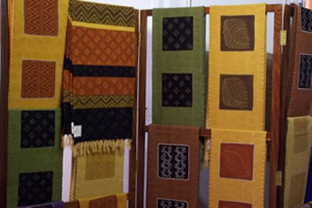 A selection of hand painted fabrics from Sibanda's Crafts in Maun, Botswana