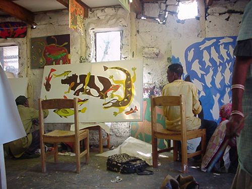 The art work is an unusual combination of child-like spontaneity and creativity with sophistication in the designs and colors that individual artists choose.
