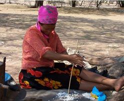 Click above to watch a short clip of Dinah Bob and friends at Dqae Qare Game Farm making ostrich egg shell beads. As you can see, these activities are commonly carried out in small groups allowing for socialization and communal child care.