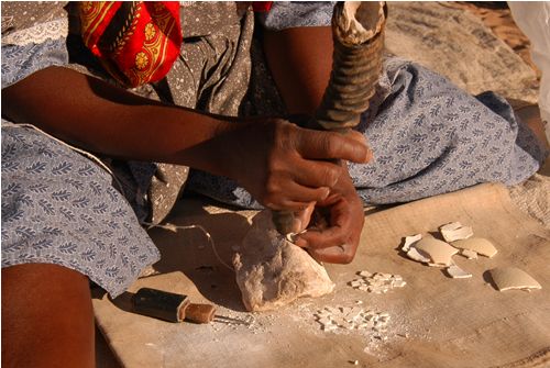 The making of the beads is a long and laborious task.